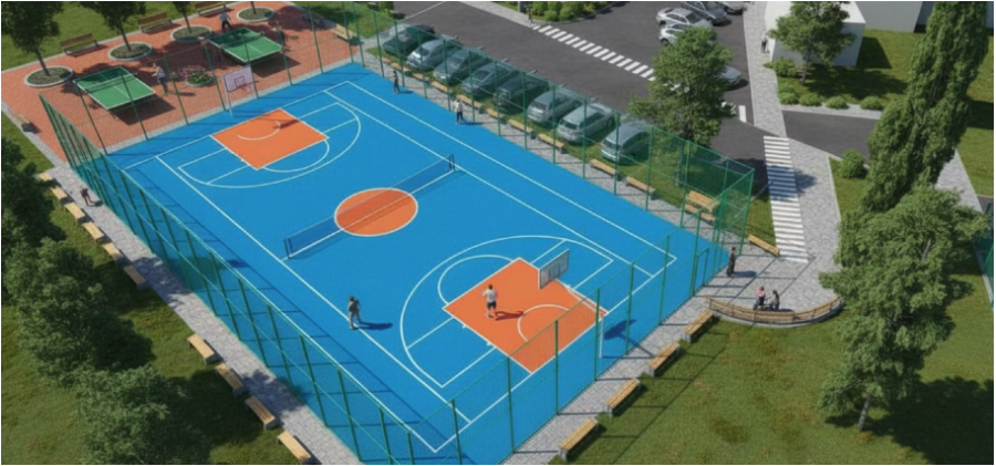Proiectul își propune construirea unui teren multifuncțional de baschet, volei și un spațiu sigur și modern pentru activități sportive. Credem cu tărie că investiția în sport este o investiție în oameni și în viitorul nostru comun.